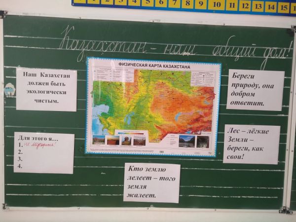 9 апреля в классах начальной школы прошёл классный час на экологическую тему "Казахстан - наш общий дом". Ребята обозначили экологические проблемы и назвали пути их решения.