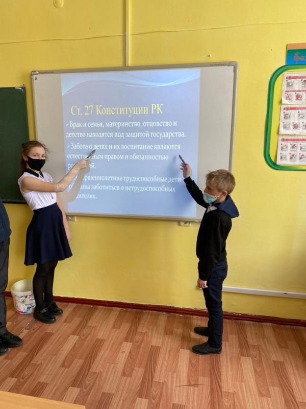 2020 жылғы 27 ақпанда 5 -ші сынып оқушыларымен кәмелетке толмағандар арасындағы құқық бұзушылықтардың алдын алу бойынша "Баланың құқықтары – ата-ананың міндеті" тақырыбында "Құқ…