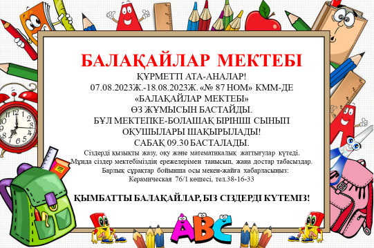 Балақайлар мектебі өз жұмысын бастайды.