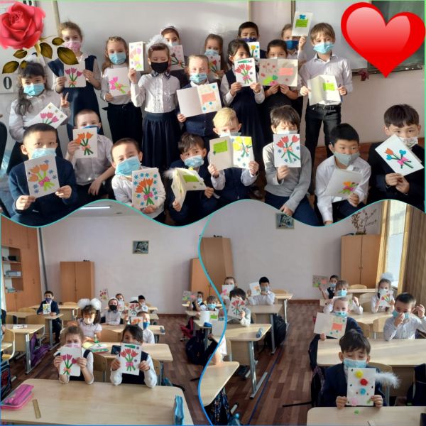 Ученики 1А класса с любовью выполнили поздравительные открытки к празднику весны.