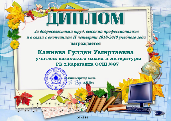 Жақсы игі істері, жан жылулығы үшін мектеп мұғалімдері "КРСУ" сайтының әкімшілігі атынан дипломмен марапатталды