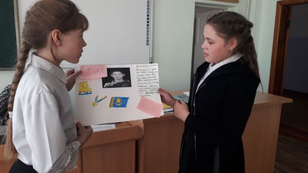 7 "А" сыныбында "Қазақстан спортшылары" тақырыбындағы сабақ өтті. Сабақта топтық жұмыс, жұптық жұмыстар жүргізілді. Топтық жұмыста оқушылар әр қазақстан спортшыларына кластер құр…
