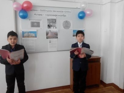 Классный руководитель 6"А" класса Каниева Гулден Умиртаевна провела открытый классный час на тему "Астана-город Мира и согласия "