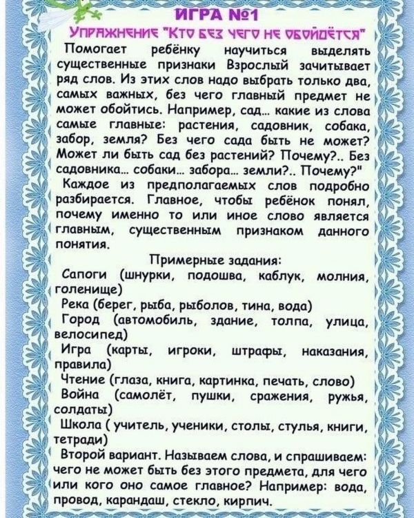 Картотека игр на развитие внимания