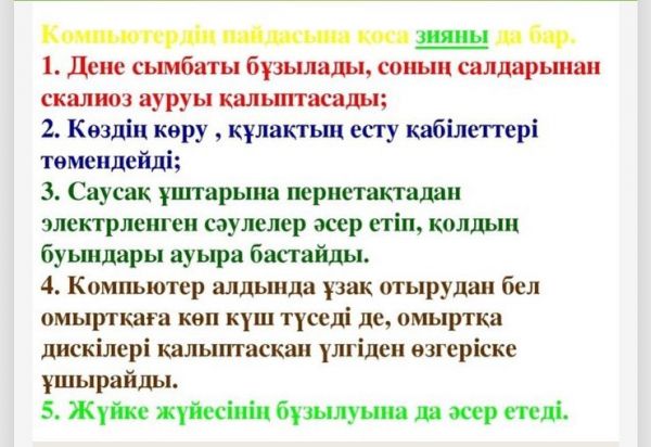 8 "Ә" сыныбында онлайн сынып сағаты өтті. Тақырыбы: "Компьютердің пайдасы мен зияны"