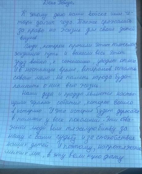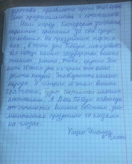 Ученица 8А класса Козбагарова Дильназ посвятила свое сочинение Ветерану Великой войны, нашему земляку, Ляхову Сергею Семеновичу.