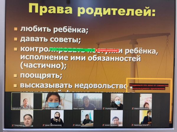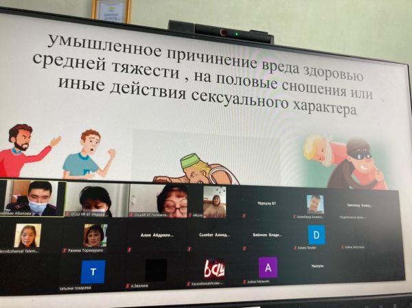 В рамках Недели правовой грамотности через платформу zoom в школе проведено собрание для родителей и учащихся с участием школьного инспектора Усена д. И зам директора по ВР Голенковой Л. Н: