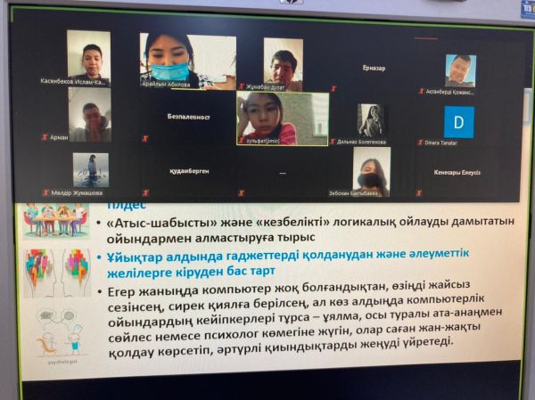 “Цифрлық әлем” ақпараттық сауаттылықты дамыту апталығы аясында 8-9 сынып оқушыларымен “Интернет желісіндегі балалардың қауіпсіздігі” тақырыбында zoom платформасы арқылы мекте…