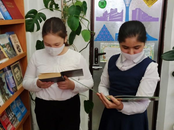 «Бәрін таста, кітап оқуды баста» тақырыбында мектеп оқушылары үзіліс кезінде кітапханаға келіп, өздеріне ұнаған кітаптарын оқыды. Кітап оқып тіл байлықтарын дамыта отырып есте сақтау қаб…