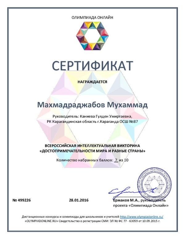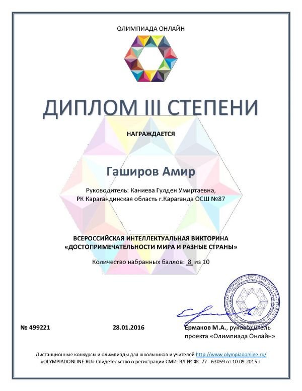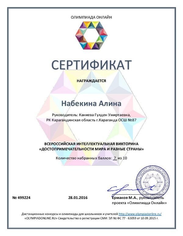 5 "А" сынып оқушысы Канатбек Нурболсун қазақ тілі пәнінен Республикалық олимпиаданың жеңімпазы. 1 орын!!! Жетекшісі - Каниева Гүлден Өміртайқызы