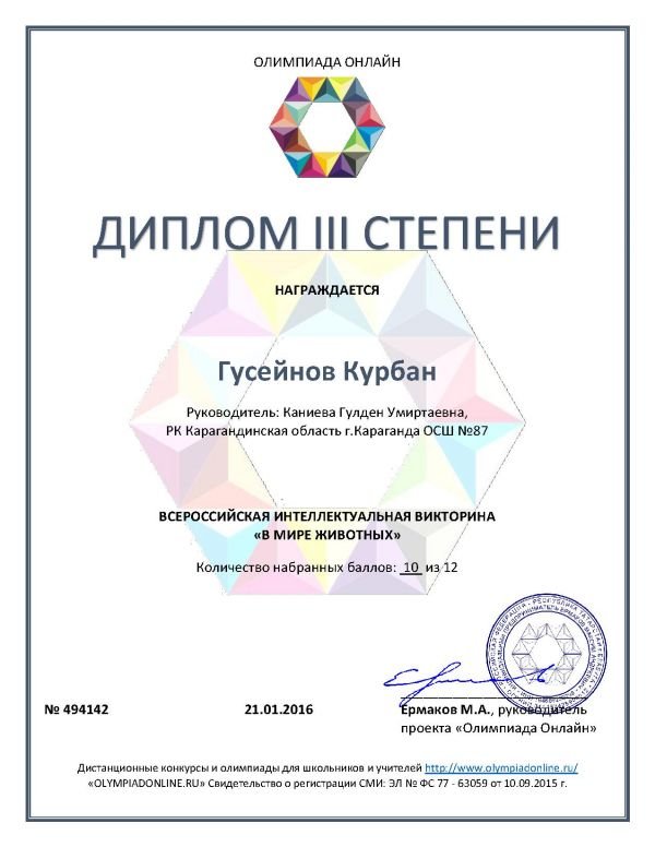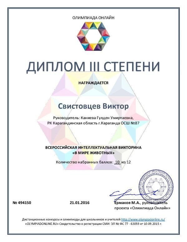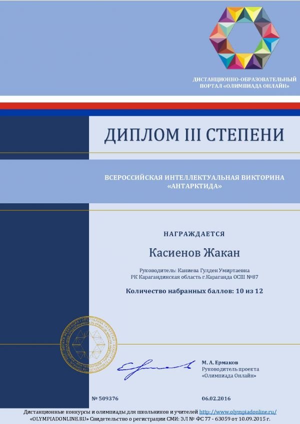 5"А" сынып оқушылары, сынып жетекшілері Каниева Гулден Умиртаевнаның жетекшілігімен, халықаралық интеллектуалдық сайысқа қатысып, Диплом иегерлері атанды