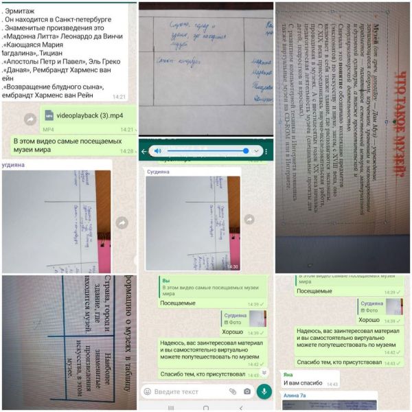 7 «А» сынып оқушылары каникул кезінде әлемнің әйгілі мұражайларына: Луврға (Париж), Қытай ұлттық музейіне, Митрополитенге (Нью-Йорк) онлайн-экскурсия жасады.