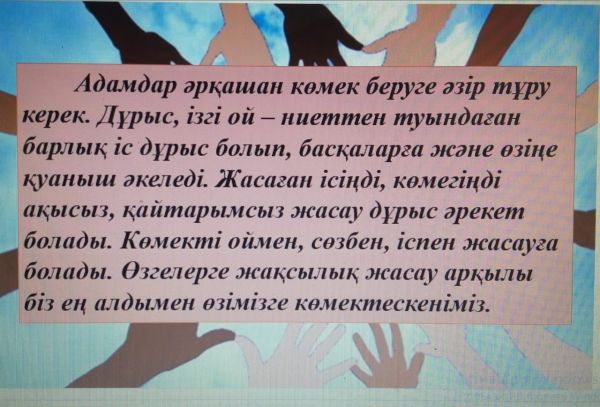 6 А сыныпта "Толеранттылық күні" тақырыбында сынып сағаты өтті. 16 қараша Халықаралық толеранттылық күні. Бұл күн 1995 жылы ЮНЕСКО-ның бастамасымен толеранттылық қағидаттарының Декларациясын қабылдау…