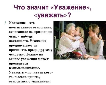 Признание прав, достоинств, умение видеть и учитывать границы, личные особенности другого человека, – вот что значит уважение. Поступки достойные уважения влияют на социум и всегда поощряются,…