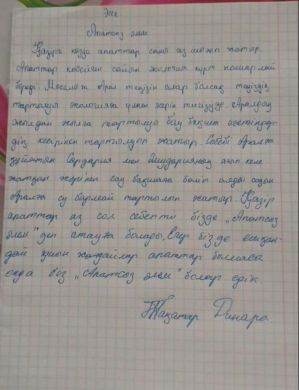 Келешек ұрпақты қоршаған ортаға қамқорлық жасауға тәрбиелеу және экологиялық тәрбиені насихаттау мақсатында «Апатсыз әлем» тақырыбында 8-сынып оқушылары арасында онлайн режимде эссе байқ…