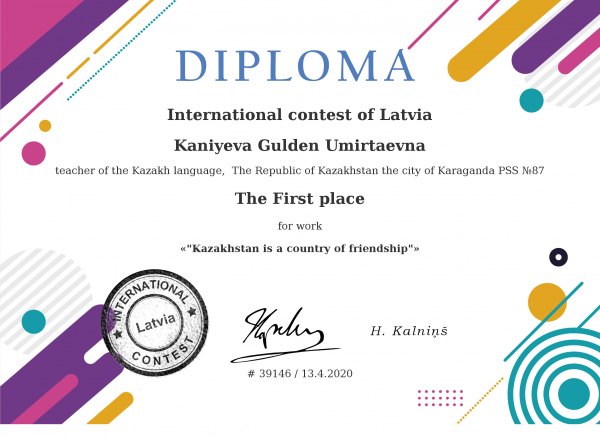 Қазақстан халықтарының бірлігі күніне орай өткізілген байқаудан жүлделі орын!