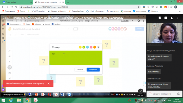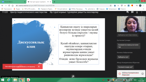 Бүгін қазақ тілі мен әдебиет пәндерінің мұғалімдері ЦПМ ұйымдастырған «Қашықтықтан оқыту кезіндегі жұмысты тиімді ұйымдастыру» атты тақырыпта вебинарға қатысты.