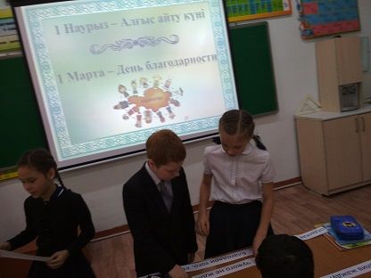 4 "Б" және 2 "А" сынып оқушылары Алғыс күніне арналған сынып сағатын өткізді. Мұғалім-Лоренц Г. Х.