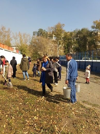 05 октября ученики школы все вместе вышли на уборку пришкольной территории.