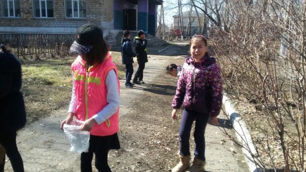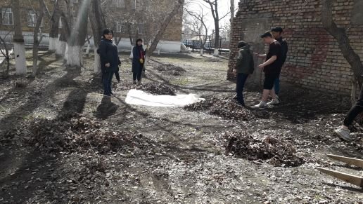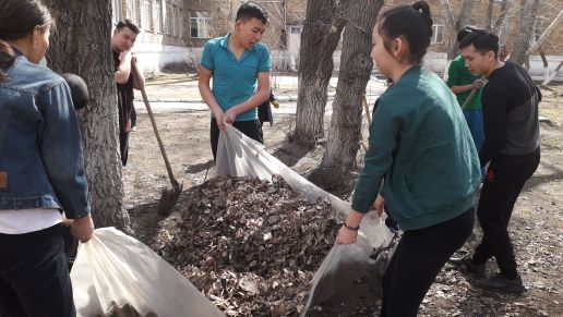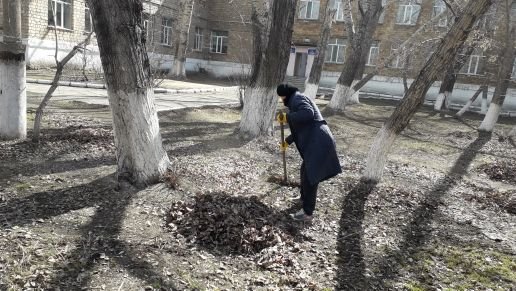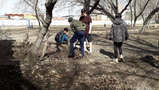 учителя и ученики школы вышли на субботник. Чистота начинается с нас.