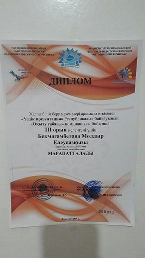 Поздравляем учителя казахского языка и литературы Каниеву Гулден Умиртаевну с получением диплома