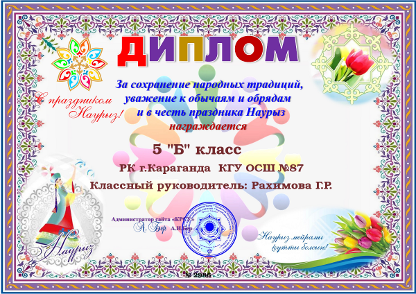 Қарағанды қаласының "№87 НОМ" оқушылары халық дәстүрлерін сақтап, қазақ халқының салт-дәстүрлері мен әдет-ғұрыптарын құрметтегені үшін дипломмен марапатталды.