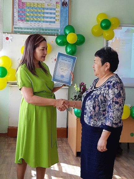 Мектебіміздің қазақ тілі мен әдебиеті пәндерінің мұғалімдері Билялова Динара Бахтияровна, Мадыханова Гаухар Мейырхановна, Атамбаева Айгуль Канатхановна, Торемуратова Рахима Абдразаковна, Каниева Гул…