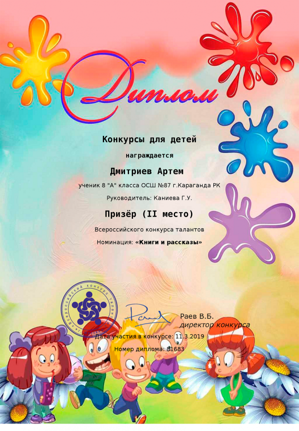 8 "А" сынып оқушылары Халықаралық "Кітаптар және әңгімелер" байқауына белсенді қатысып, жүлделі орындарға ие болды. Гартун Никита-1 орын, Шабданов Байболот-1орын, Советбекова Сам…