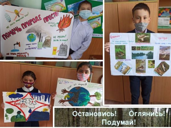 «Табиғат күні» аясында балаларды экологиялық мәдениетке баулу мақсатында 4-сыныптарда «Адам, тоқта, айналаңа қара! » атты тақырыпта постер қорғау ұйымдастырылды. Біздің ғалам…