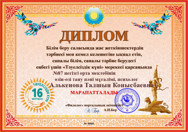 "Тәуелсіздік күні" мерекесі қарсаңында білім беру саласында жас жеткіншектердің тәрбиесі мен кемел келешегіне ықпал етіп, сапалы білім, сапалы тәрбие берудегі еңбегі үшін мектеп мүғалімдер…