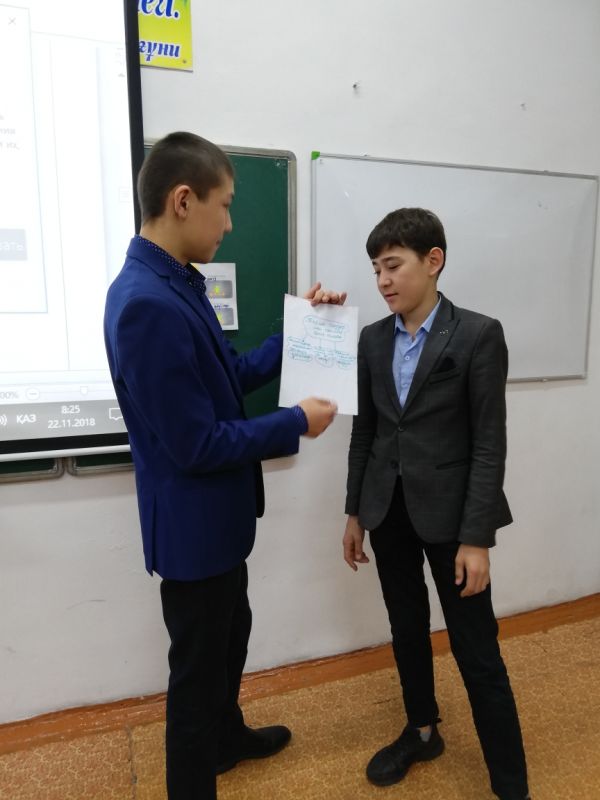 22.11.2018 жылы 8"Ә" сыныпта қазақ тілі сабағында "Инженер болғым келе ме?" тақырыбы бойынша оқушылар топтық жұмыс жасады. Пікір -талас, яғни екі пікірдің бірін жақтап, ойталқы ө…