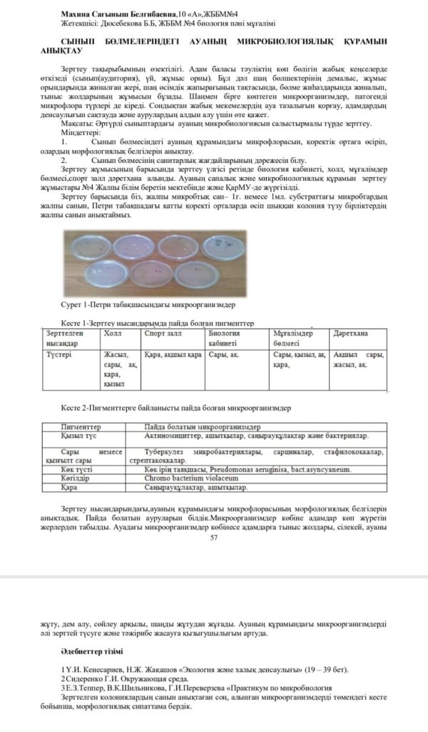 "Сынып бөлмелеріндегі ауаның микробиологиялық құрамын анықтау"