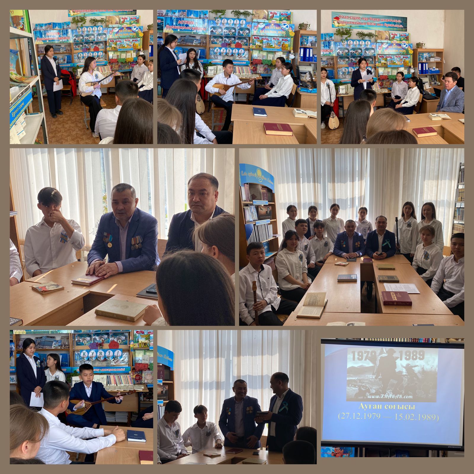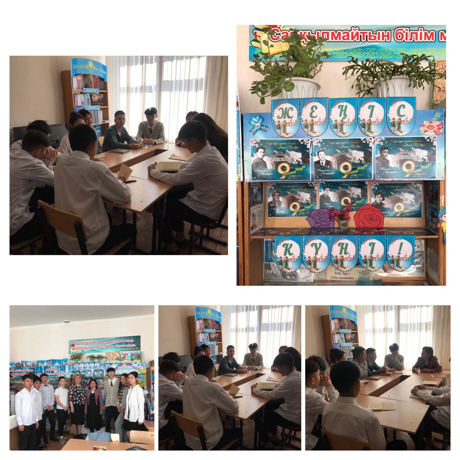 Мектеп кітапханасында еңбек ардагері, соғыс кезінде туып, соғыстың зардабын көрген ардагер анамыз Умирзакова Раиса Каламовнамен кездесу ұйымдастырылды. Мақсаты: Ұлы Отан соғысы, оның зардаптары, Ұлы Жеңіс туралы мағұлмат беру. Балаларды адамгершілікке, от