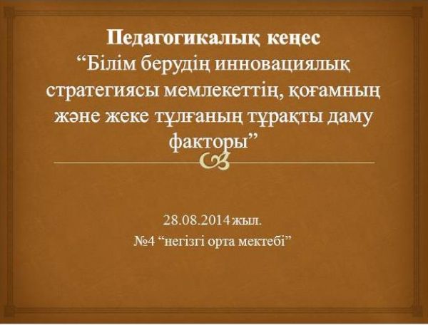 28.08.2014 №4 Негізгі орта мектепте тамыз педагогикалық кеңесі өткізілді! Тақырыбы:"Білім берудің инновациялық стратегиясы - мемлекеттің, қоғамның және жеке тұлғаның тұрақты даму факторы…