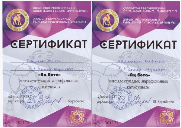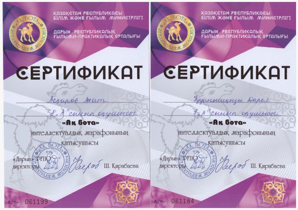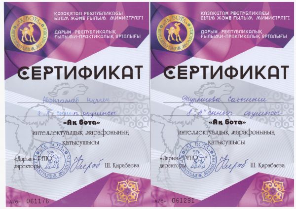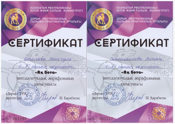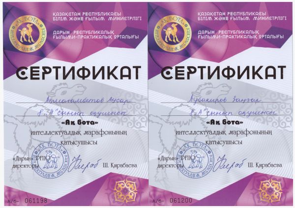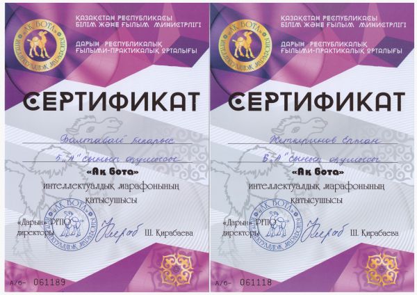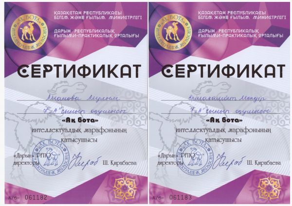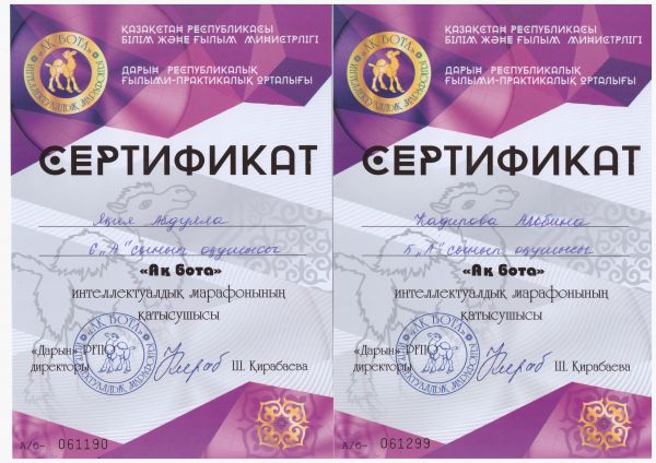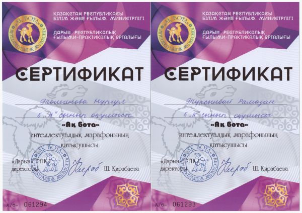 "Ақбота" интеллектуалдық марафонына қатысушы сертификат иегерлерін құттықтаймыз.