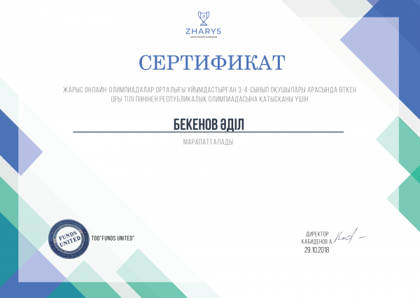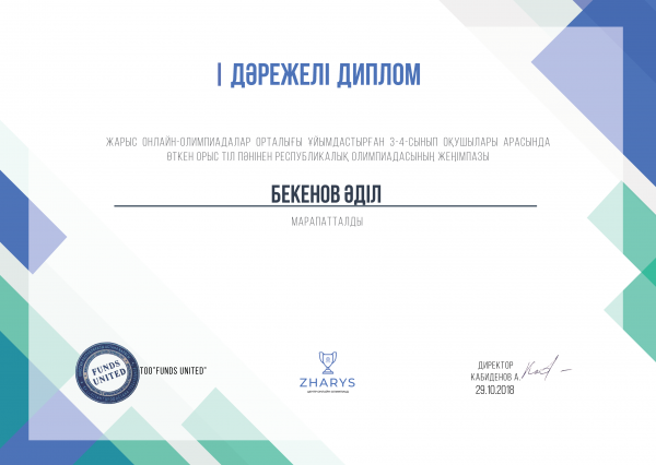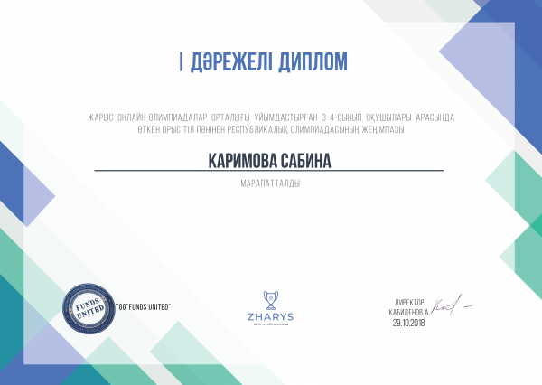 Жарыс онлайн-олимпиадалар орталығы ұйымдастырған 3-4 сыныптар арасында орыс тілі пәнінен республикалық олимпиадасының жеңімпаздарын құттықтаймыз.
