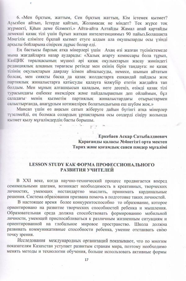№4 мектеп мұғалімі Еркебаев Асқар 7 модульдің ішіндегі сын тұрғысынан ойлау мәселесін өз мақаласында қозғады. «А.Байтұрсынов идеялары оқушыларды сын тұрғысынан ойлауға үйрету мәселесі».…