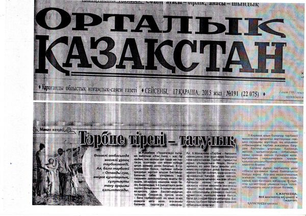 17 қараша күні Орталық Қазақстан газетіне №4 НОМ-тің әлеуметтік педагогы Қ.Жаркееваның "Тәрбие тірегі-татулық" тақырыбында мақаласы жарық көрді.