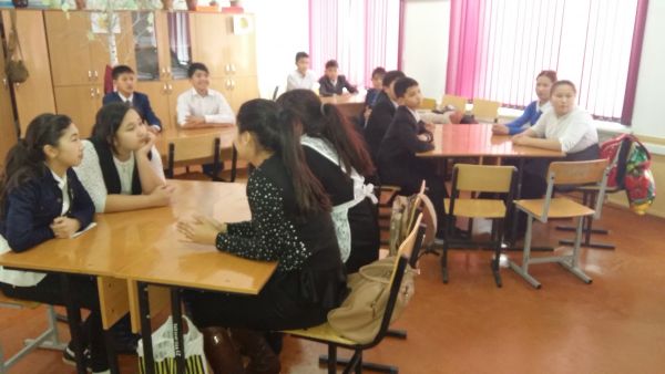 17 қараша күні №4 НОМ-те 8 сыныптар арасында "Халықаралық темекіден бас тарту күніне" орай 8 сыныптар арасында "Біз темекіге қарсымыз" тақырыбында мектеп медбикесі Кангелд…