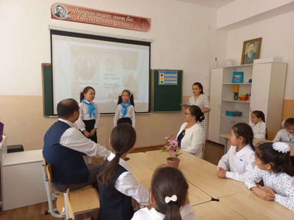 22.04.2022ж.4 ЖББМ.  4 сыныптар арасында "Өнегелі өмір" жобасы аясында "Ұстаздық еткен жалықпас, үйретуден балаға" тақырыбында ардагер ұстаз  Карибаева Рыскүл Көпейқы…
