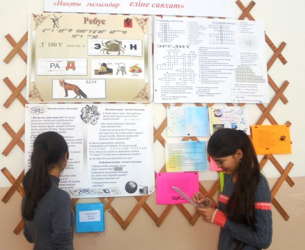 №4 негізгі орта мектебінде "Нақты ғылымдар еліне саяхат" атты 5-6 сыныптар арасында сөзжұмбақ, ребус шешу мақсатында қабырға бұрышы ұйымдастырылды.