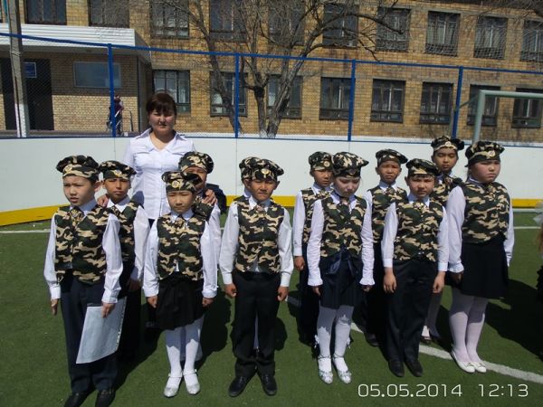 № 4 НОМ бойынша Ұлы Отан соғысы Жеңісінің 69 жылдығына және «Патриот» атты бұқаралық – қорғау жұмыстары айлығына арналған саптық дайындық сайысы 1 – 9 сыныптар аралығында өтті.