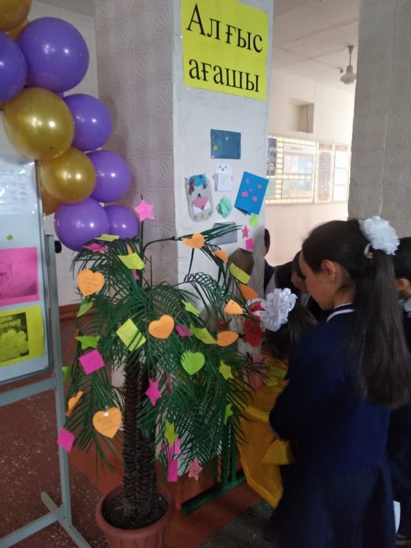 «Алғыс айту» күні  айтулы мереке.Осы мерекеге байланысты мектебімізде әр түрлі іс-шаралар болды.  Оқушылар  жүрекжарды тілектерін жазып, «Алғыс» ағашын жасанды…
