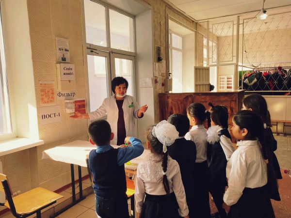 Мектеп медбикесі Б.Б.Бармакпаева антисептикпен қол жуу ережесі туралы оқушылармен профилактикалық дәріс өткізді.