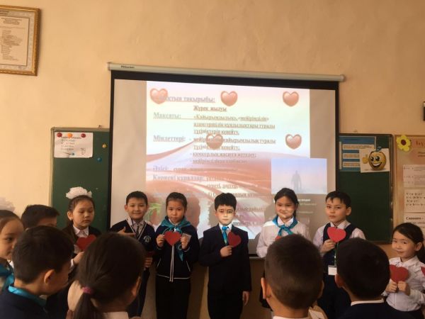 Оқушылардың жүрегіне өмір,ата—анасына,ең жақын адамдарына,жалпы қоршаған ортаға деген бауырмалдық,сүйіспеншілік,досстық секілді ізгілік қасиеттерге тәрбиелеу.Сара Назарбаева Алпысқызынын тұған күніне орай«Сүйіспеншілік—өмір негізі»атты тәрбие сағаты өтті.