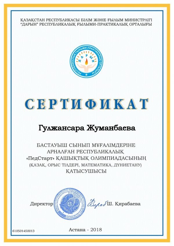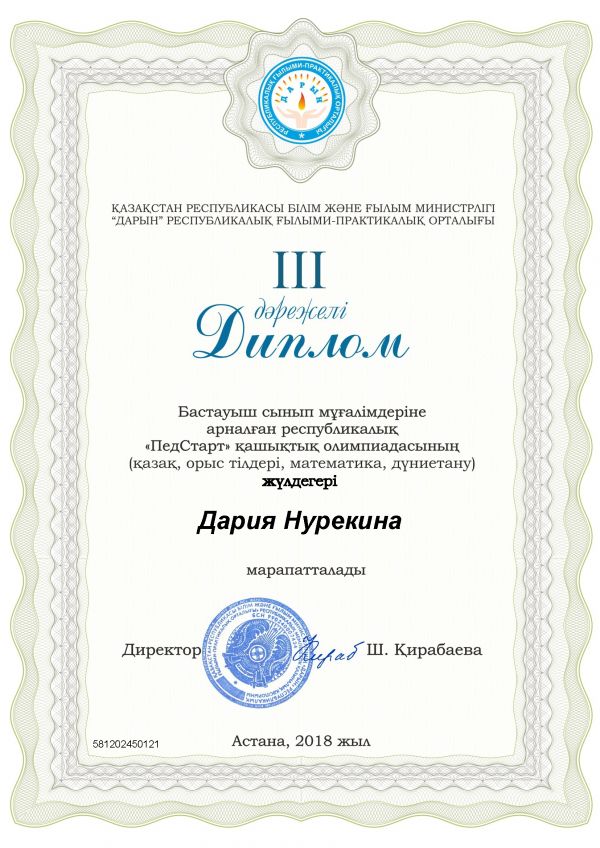 Бастауыш сынып мұғалімдеріне арналған республикалық "Педстарт" қашықтық олимпиадасына қатысып, мектебіміздің бастауыш сынып мұғалімі Нурекина Д.Ж. мен Ануарбекова Г. ІІІ орынға ие болды.&n…