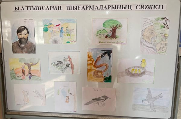 1-8 сыныптар арасында Ы.Алтынсарин шығармаларының сюжеті бойынша жас суретшілер көрмесі ұйымдастырылды.  Ұйымдастырған: Альжанова Д.У.