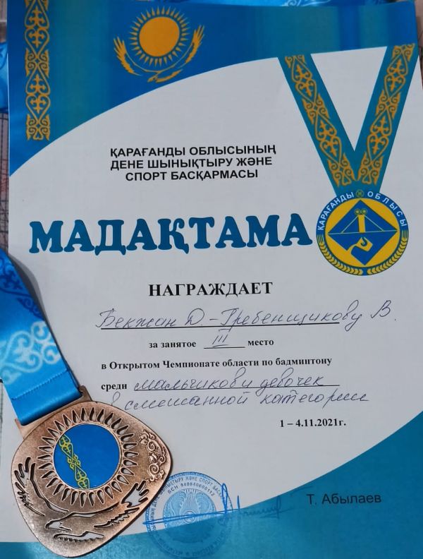 Мектебіміздің 4 "А" сынып оқушысы Бекжан Данияр бадминтон бойынша облыстық  ашық чемпионатта III орын иеленді. Даниярды жеңісімен құттықтаймыз!