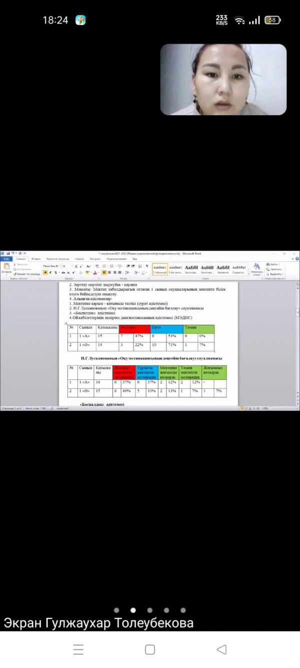 1-сынып оқушыларының бейімделуіне байланысты мектеп психологымен ата-аналар жиналысы өтті