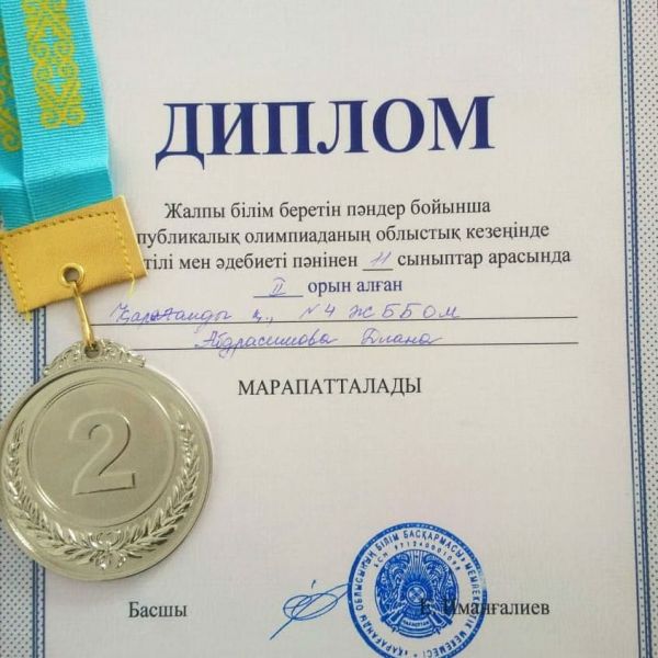 Жалпы білім беретін пәндер бойынша Республикалық олимпиаданың облыстық кезеңінде қазақ тілі мен әдебиеті пәнінен 11 сыныптар арасында №4 ЖББОМ оқушысы Абдрасилова Диана ІІ орын алды. Жетекшісі: Шуке…